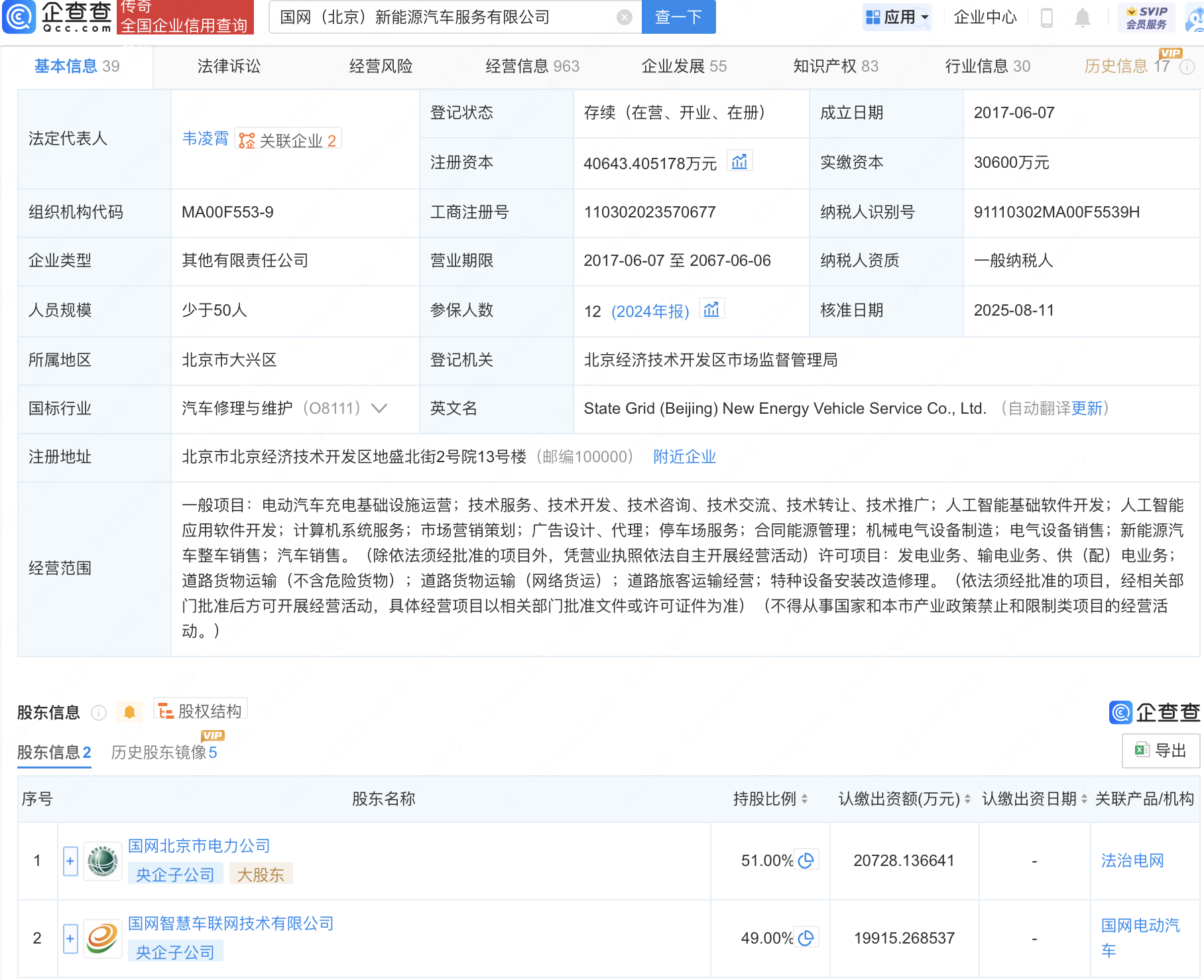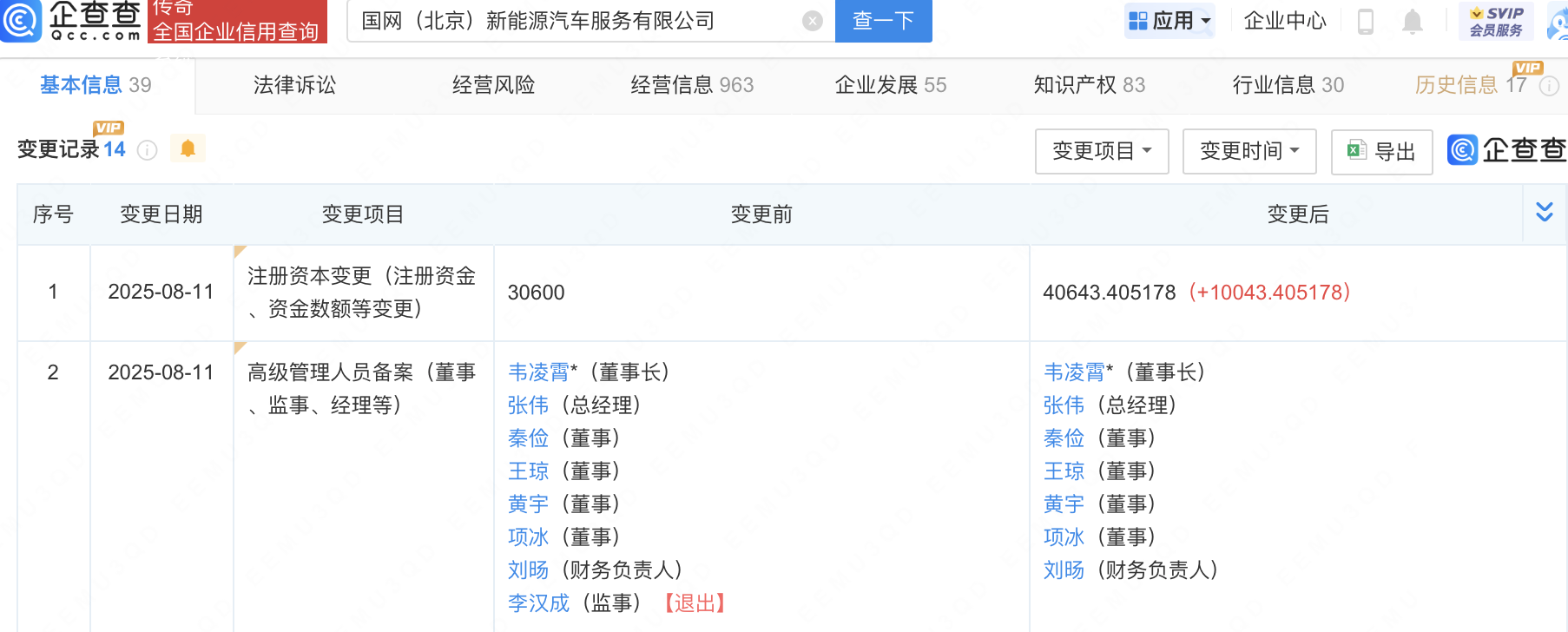 近日配股票配资网,国网(北京)新能源汽车服务有限公司发生工商变更,注册资本由3.06亿元增至4.06亿元,增幅约32.82%。企查查信息显示,该公司成立于2017年,法定代表人为韦凌霄,经营范围包含:人工智能基础软件开发;人工智能应用软件开发;计算机系统服务;市场营销策划等,由国网北京市电力公司、国网智慧车联网技术有限公司共同持股。